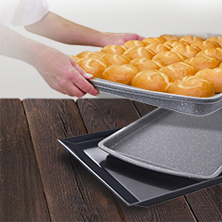 Náš tip: Nízky plech s nepriľnavým povrchom Grande nebo plech skosený - skosená strana umožní rýchle zosypanie z plechu.
