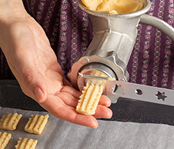 3. adventný týždeň znamená okrem iného aj pečenie strojčekového pečiva. S patričným nástavcom premeníte ručný strojček na mäso v praktický strojček na pečivo. Stačí vložiť pripravené cesto do mlynčeka a vybrať potrebný tvar pečiva. Prosíte si banániky, kokosové tyčinky alebo pudingové či pistáciové koláčiky? So strojčekom ich zvládnete ľahko a rýchle. Napečené dobroty zatiaľ nezlepujte marmeládou ani krémom. Nemuseli by vám do Štedrého dňa vydržať.
