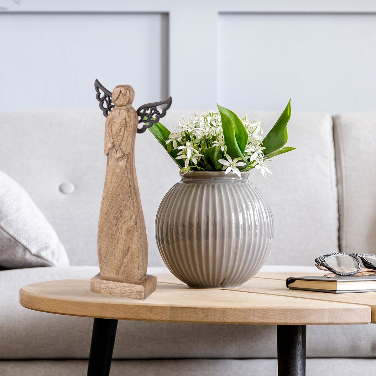 Kód produktu 351856Dekorácia ANJEL s kovovými krídlami ozdobí vašu domácnosť nielen v období Vianoc, využiť ju môžete po celý rok. Vhodná tiež ako darček. Materiál: dekoratívne mangové drevo, kov. Rozmery: š. 14 cm, v. 34,5 cm.