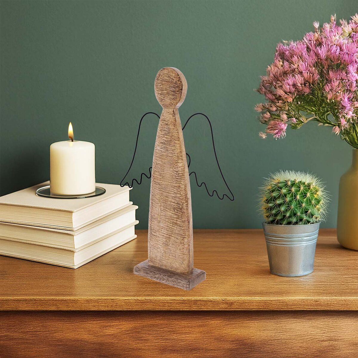 Kód produktu 351883Dekorácia ANJEL s kovovými krídlami ozdobí vašu domácnosť nielen v období Vianoc, využiť ju môžete po celý rok. Predná strana je štruktúrovaná. Vhodná tiež ako darček. Materiál: dekoratívne mangové drevo, kov. Rozmery: š. 14,5 cm, v. 21 cm.