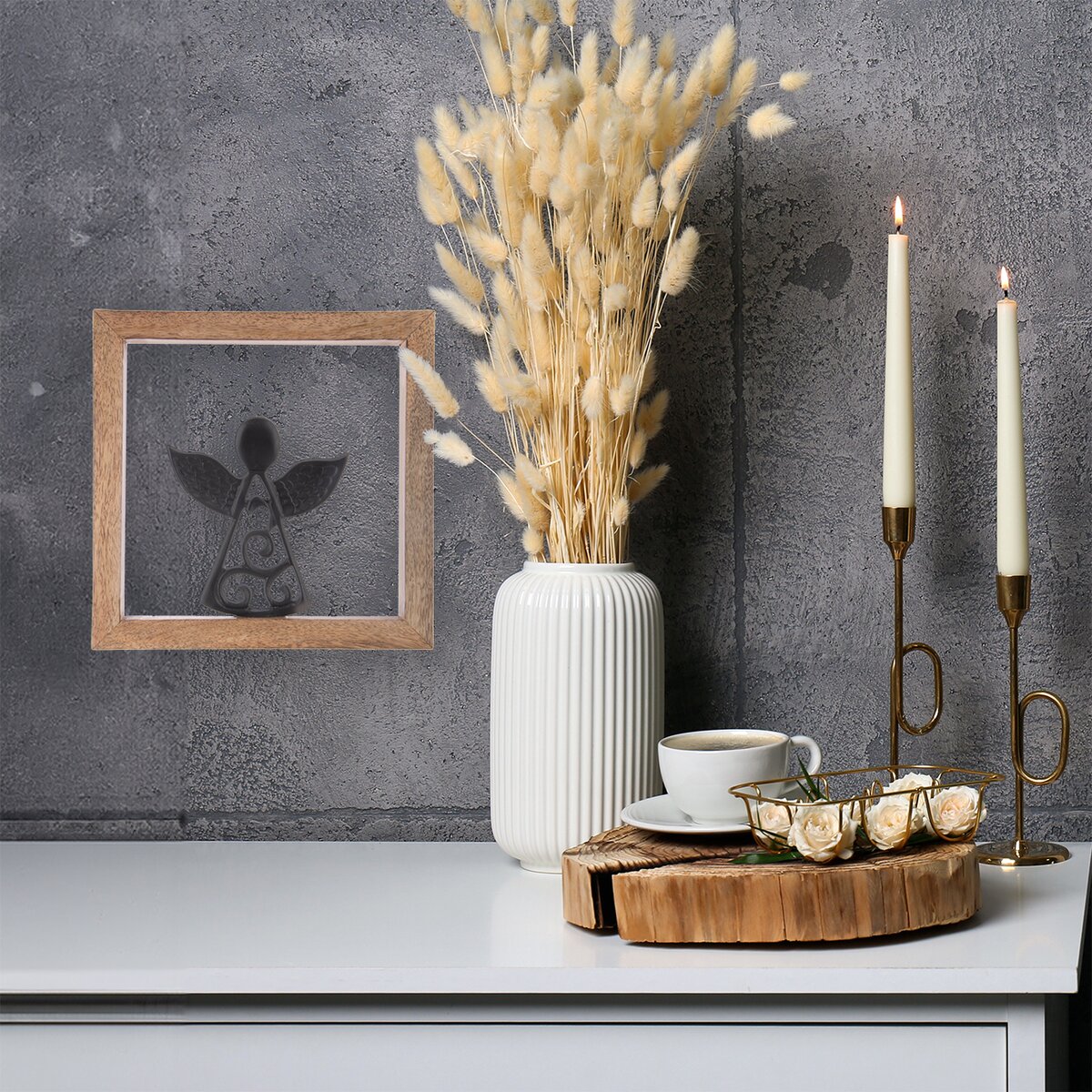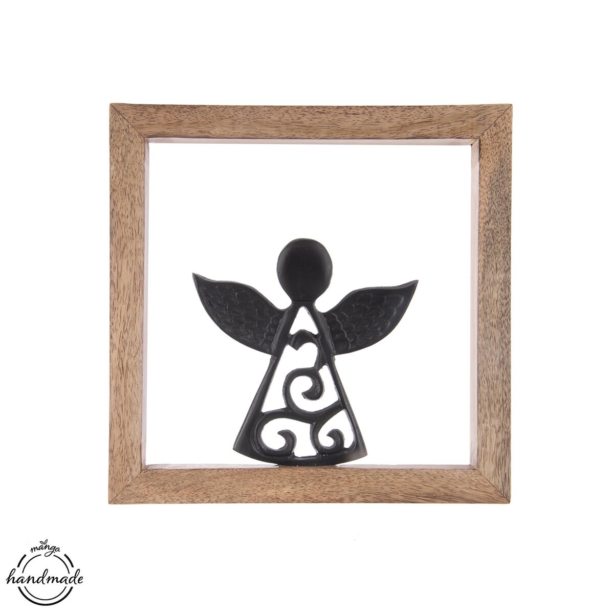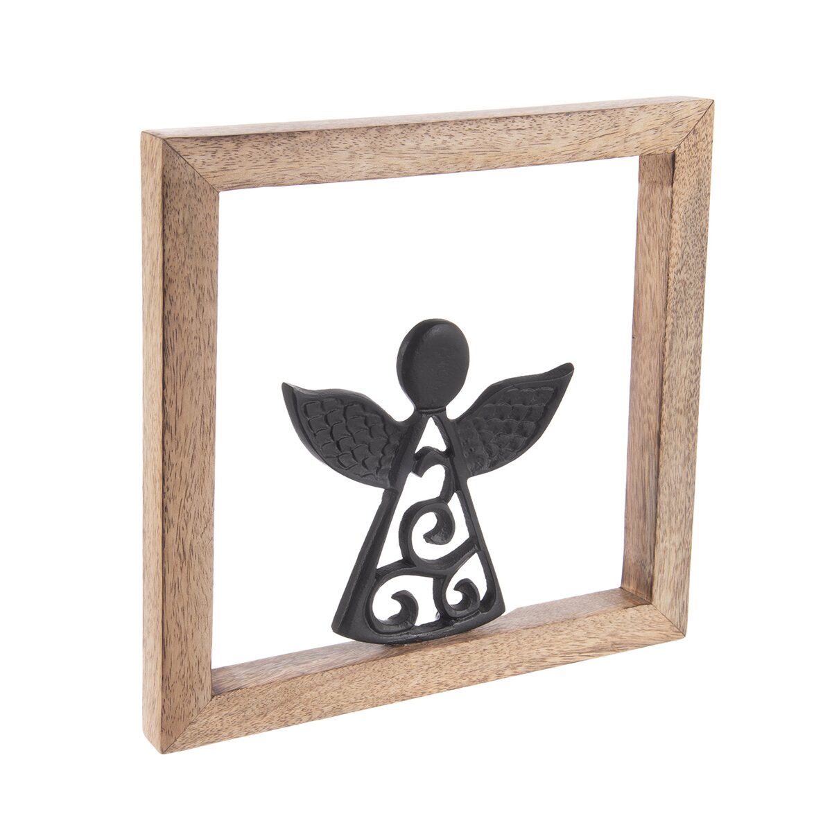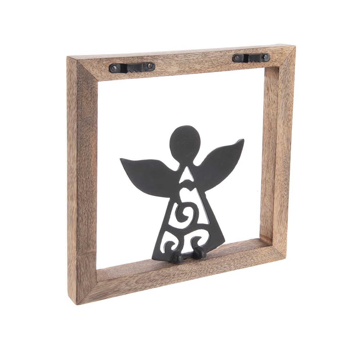 Kód produktu 351855Dekorácia rámčeka s kovovým anjelom ozdobí vašu domácnosť nielen v období Vianoc, využiť ju môžete po celý rok. Vhodná tiež ako darček. Materiál: dekoratívne mangové drevo, kov. Zavesenie na 2 závesy. Rozmery: 25,5x25,5x1,5 cm, v. anjela 13,5 cm.