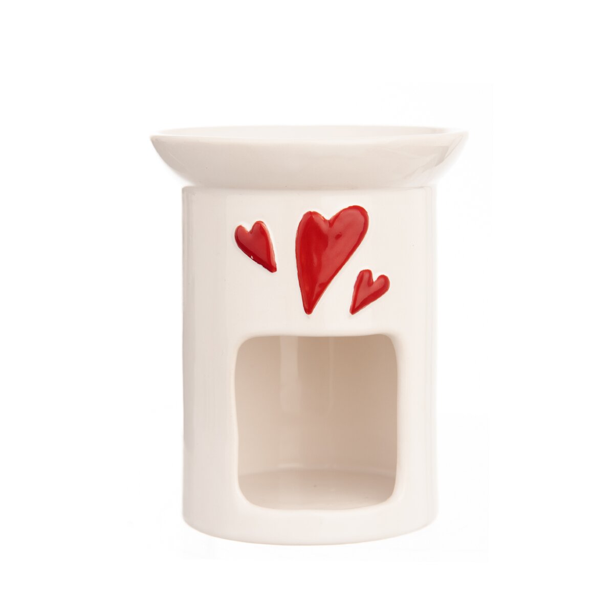 Kód produktu 822253Biela glazovaná aromalampa z keramiky - kameniny s drobnými srdiečkami prevonia domácnosť. Hore sa vloží vosk alebo sa do vody nakvapká trochu esenciálneho oleja. Čajová sviečka v dolnej časti uvoľní arómu použitej vône.