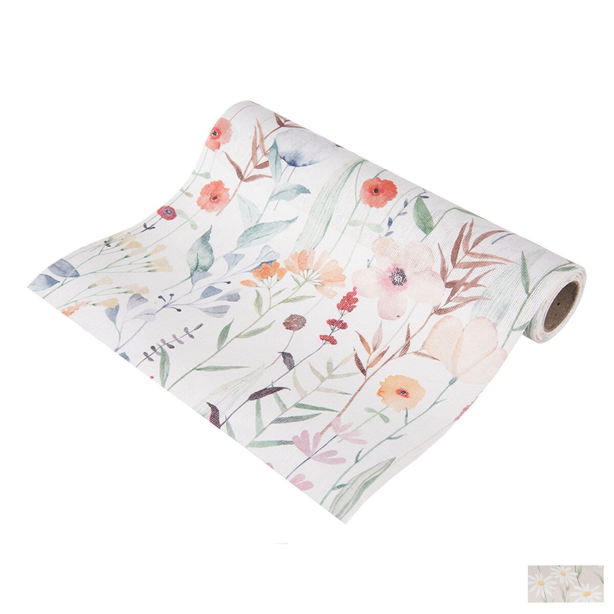 Viac informáciíUvoľnenú atmosféru na jedálenskom stole v kuchyni, ale aj na terase alebo na záhrade vytvorí zaujímavý rustikálny behúň s motívom lúčnych kvetov či margaréty. Je možné ho položiť na jednofarebný obrus alebo priamo na dosku stola, vykúzlite si tak okamžite pohodové stolovanie.