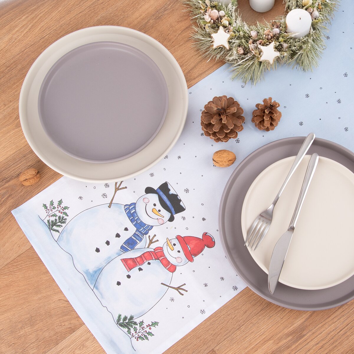 Viac informáciíPríjemnú náladu vytvorí okrem krásneho jedálenského servisu aj roztomilý behúň s motívom dvojice snehuliaka a jemných snehových vločiek. Behúň je biely, v strednej časti, kam je možné umiestniť zimnú väzbu alebo adventný svietnik, má ľahký modrý tón.