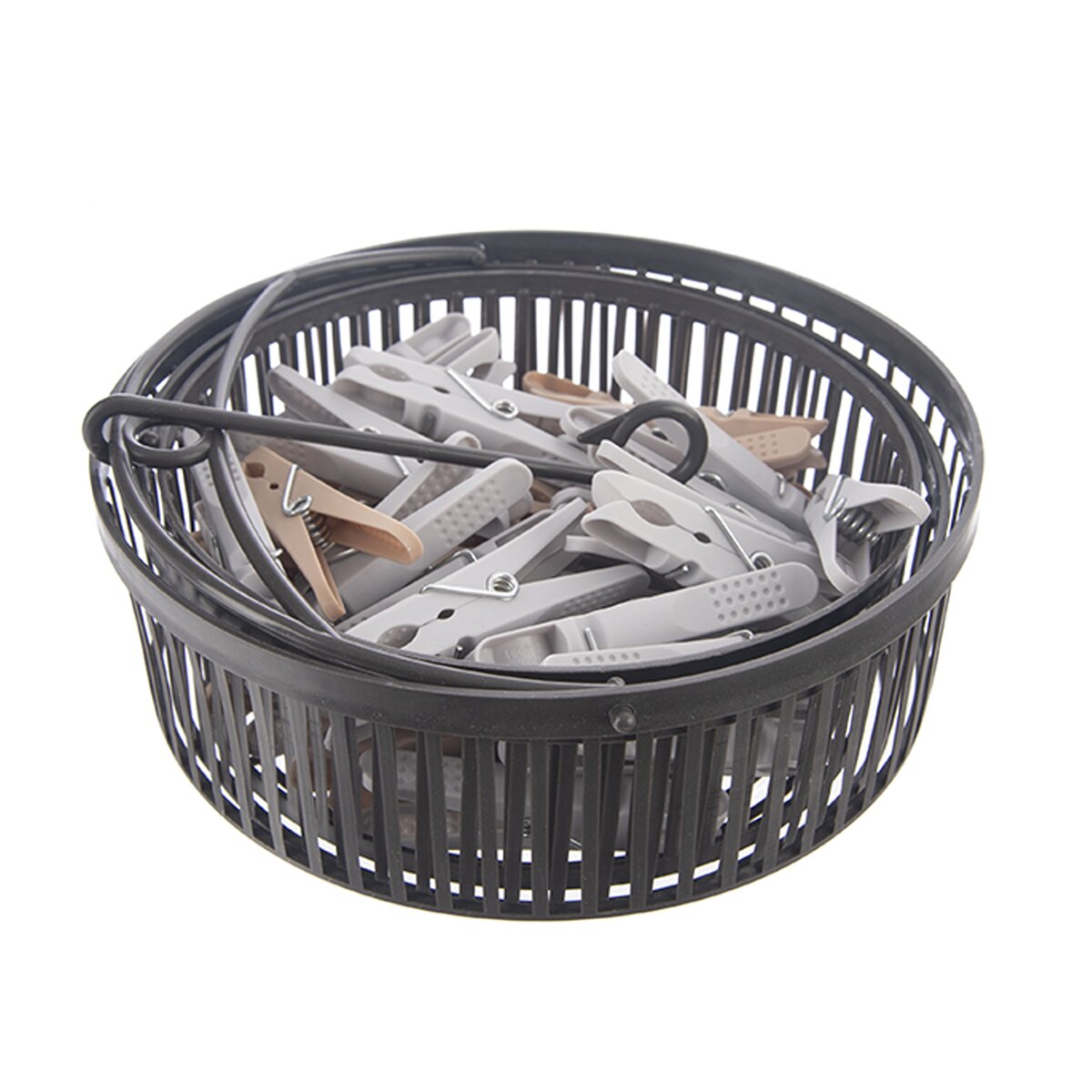 Kód produktu 531157Sada 50 kusov plastových štipcov na bielizeň, uložených v rozkladacom košíku s očkom. Ten je možné jednoducho zavesiť na šnúru na bielizeň či konštrukciu sušiaku a podľa potreby zložiť a upratať.
