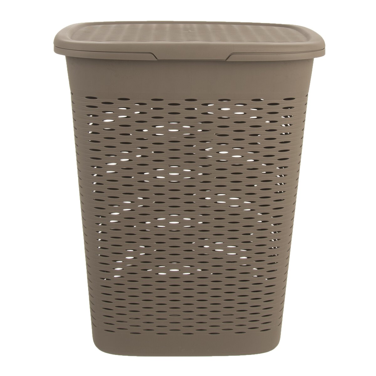Kód produktu 730543Šedý plastový kôš LOOP s vekom a dierovaným povrchom, vo veľkosti 45x35x55 cm, využijete na špinavú bielizeň.