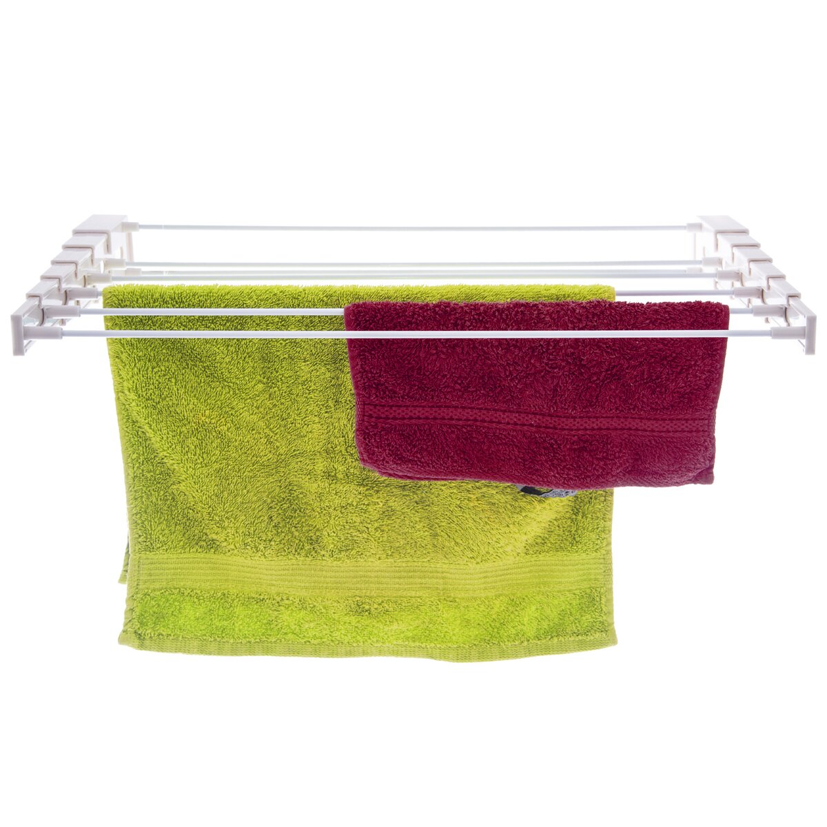 Kovový skladací sušiak je skvelý pomocník pre každú kúpeľňu, balkón, terasu alebo sušiacu miestnosť. Pomocou jednoduchého priskrutkovania ho umiestnite do akéhokoľvek priestoru a výšky. Jeho vysúvacie ramená sa dajú od steny ľahko natiahnuť. Po uschnutí bielizne potom veľmi jednoducho zhrniete sušiak späť k stene a tím získate opäť voľný priestor. Materiál: plast, oceľ. Rozmery: š. 60 cm, v. 5,5 cm, h. 8 – 33 cm. 6 polôh na sušenie – d. 52 cm. Montážny materiál je súčasťou dodávky. Nosnosť 5 kg.