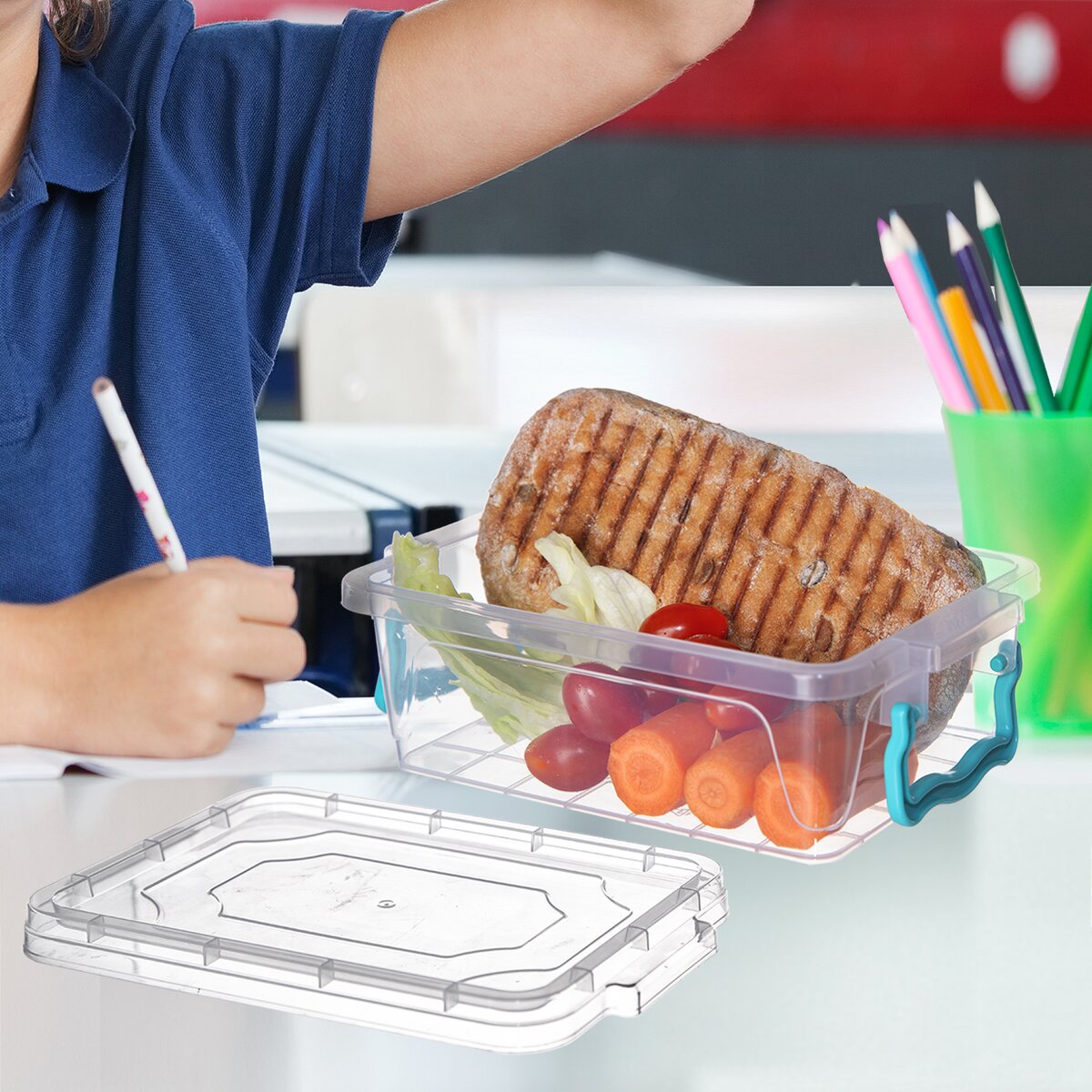 Boxy sú transparentné, takže ľahko spoznáte, čo sa v nich práve nachádza. K tomu majú pevné uzatváranie na dva postranné klipy. Okrem kuchyne môžu poslúžiť aj v kúpeľni alebo pracovni, napríklad ako dózy na šperky, gumičky, papierenské potreby a ďalšie drobnosti.