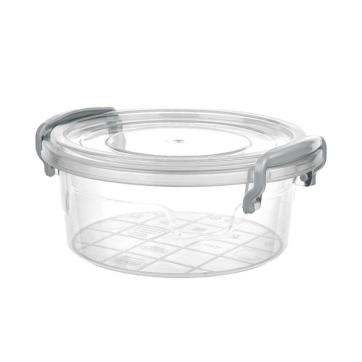 Kód produktu 124635Plastový okrúhly box s objemom 1,2 l s vekom a dvoma klipmi.