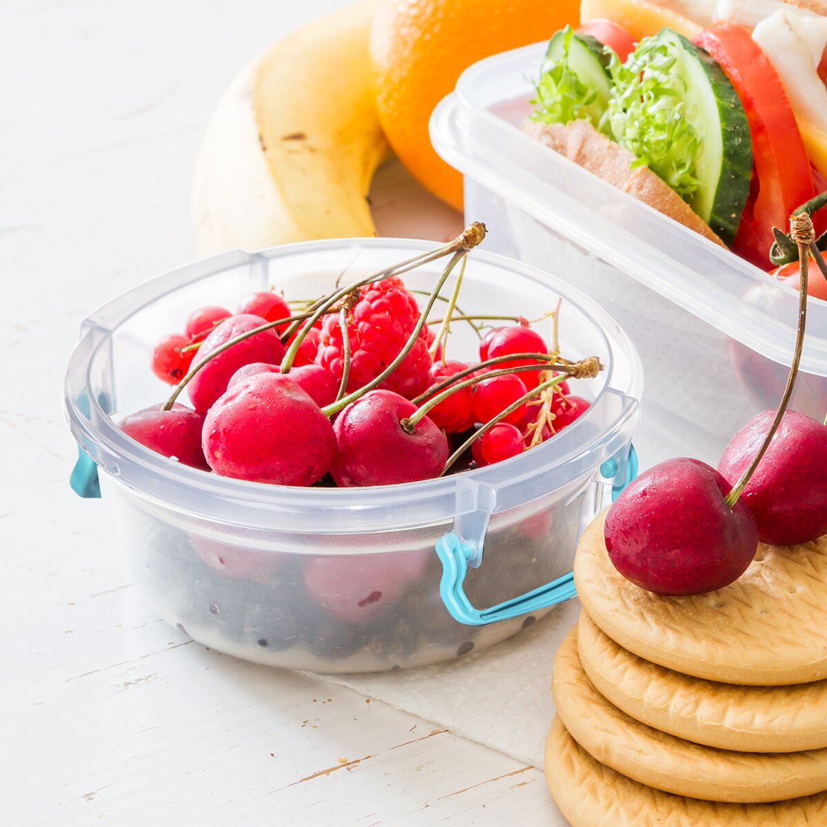Nízka dóza, ktorá poslúži na uloženie a prepravu potravín alebo doma pripravených pokrmov, napr. na obed do práce. Má objem 1,2 l a jej uzavretie zaisťuje plastové viečko s dvoma pevnými klipmi.