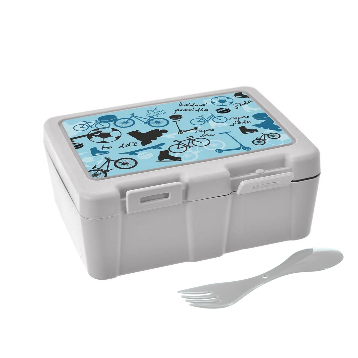 Kód produktu 154037Delený box na desiatu s originálnym športovým dekorom uloží potraviny, desiatu aj drobnosti. Súčasťou je malá lyžička a vidlička v jednom.