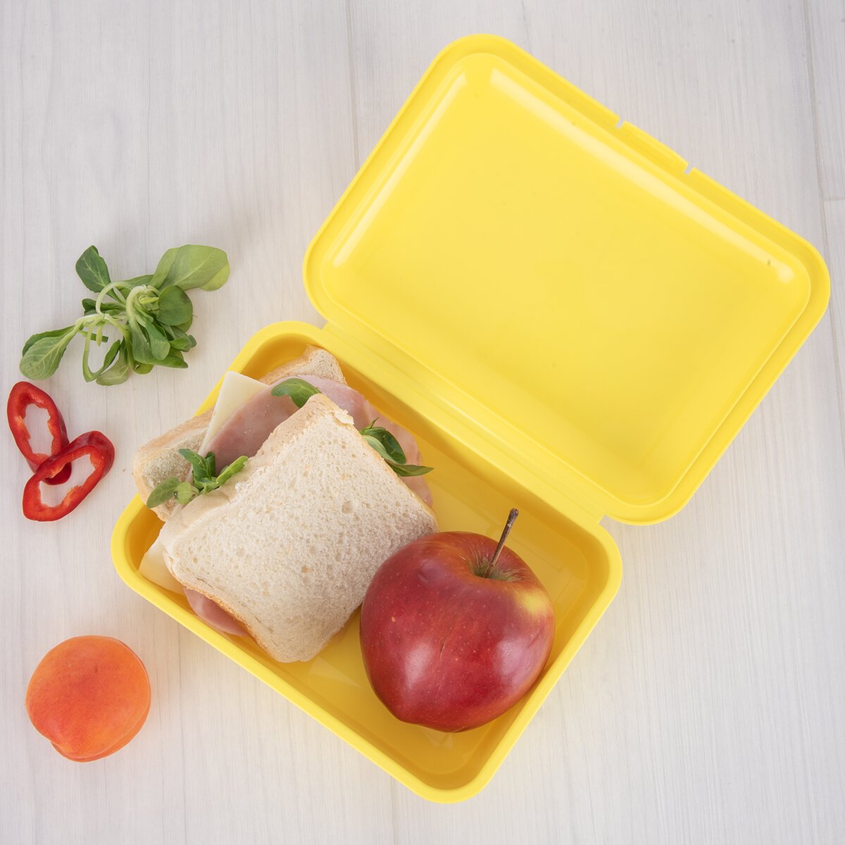 Viac informáciíDeťom do školy, škôlky, na výlet alebo do družiny. Tento žltý desiatový box sa hodí na uloženie chleba so syrom, žemle so šunkou aj na domácu buchtu alebo muffiny.