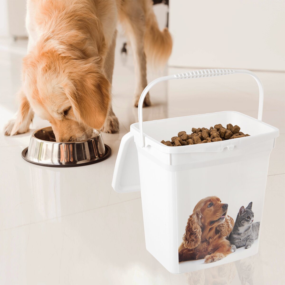 Viac informáciíAj vašim miláčikom môžete uložiť granule alebo maškrty do praktického boxu z PP plastu. Uzatvárateľný box s vekom a západkou oceníte vo chvíli, keď máte kŕmenie pre psíka, mačičku a iné domáce zvieratá uložené v priestore, kde by ľahko v papierovom vreci zvlhlo alebo sa do neho mohli pustiť nepozvaní hostia.