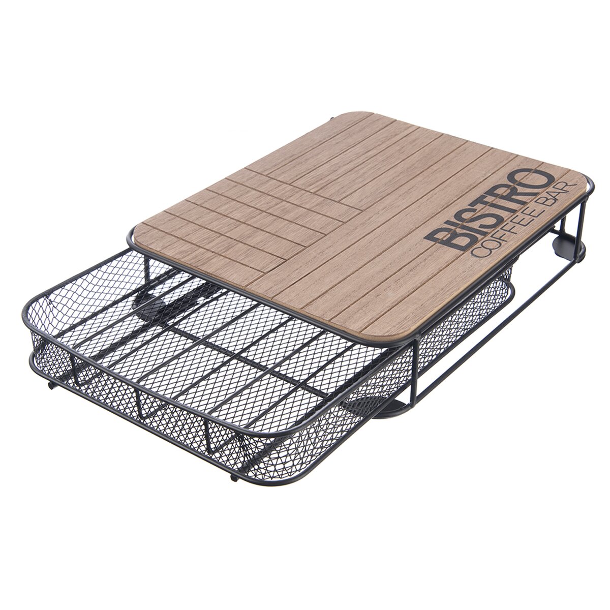 Kód produktu 811255Kovový box so zásuvkou na kávové kapsule je doplnený drevovláknitou doskou s nápisom BISTRO. Je ideálnym miestom na usporiadanie kapsúl aj ako miesto na postavenie kávovaru.