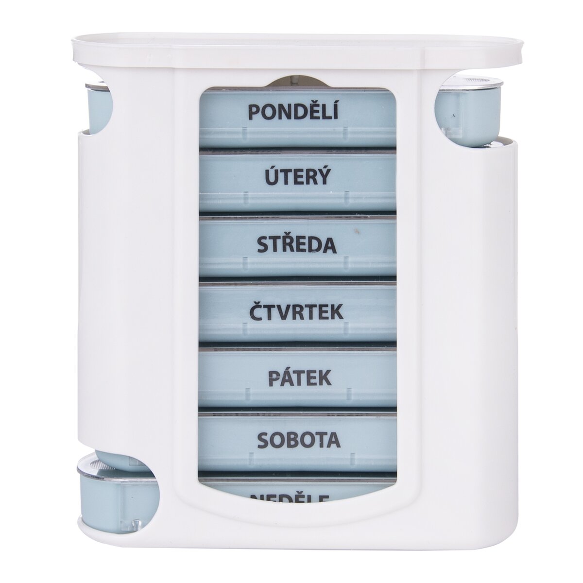 Můžete si pripraviť týždeň predpísanú dávku liekov na celý týždeň. Jednotlivé poschodia majú označení podľa dní v týdnu a mají vlastně zatváracie sviečku. Potrebnú priehradku si tak můžete vzít kamkoľvek so sebou a nebát se toho, že léky vytratíte. Aktuální den je vždy nahoře. Keď dané poschodie vyprázdnite, vsuňte ho dole boxu, nechť máte připraveny na zítra.