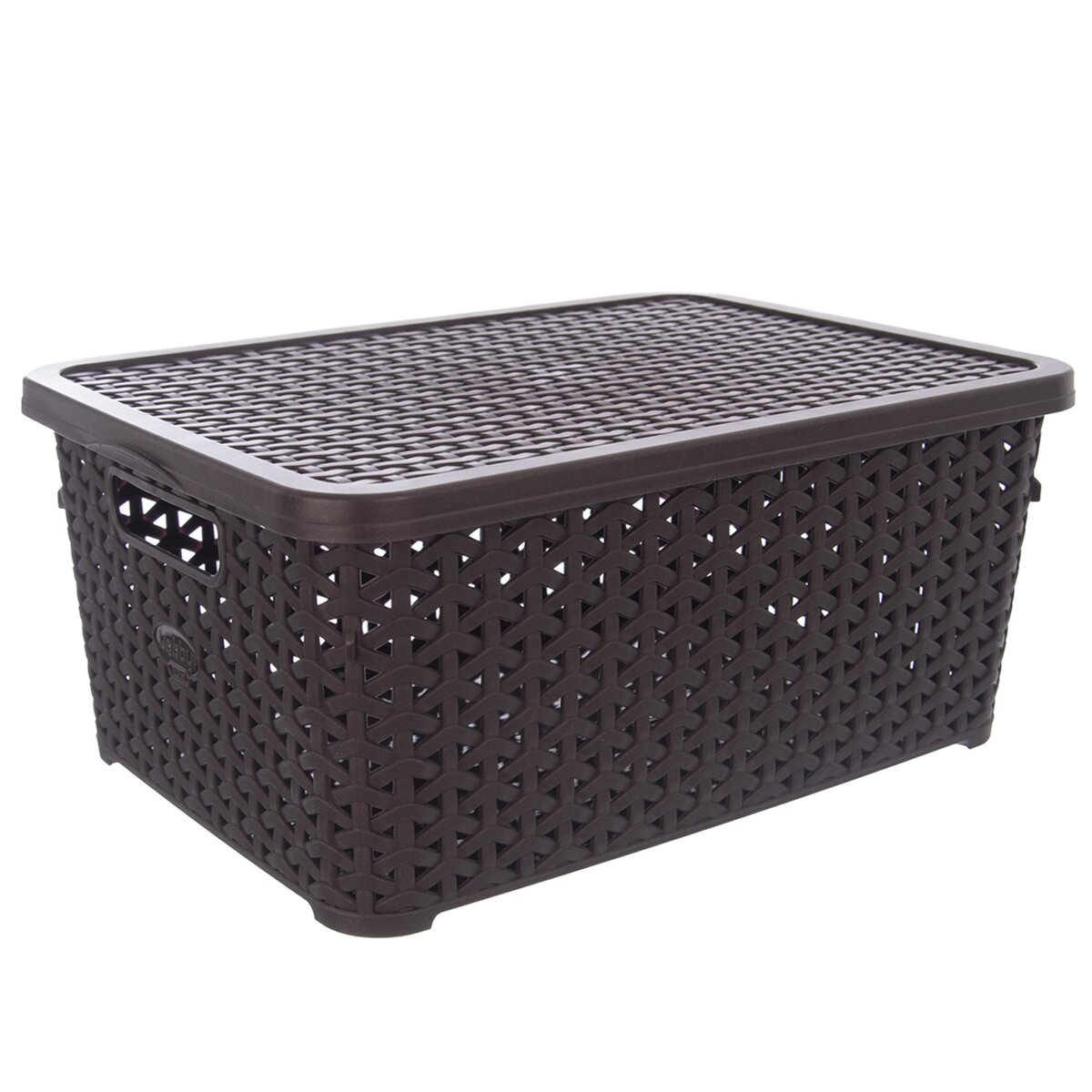 Kód produktu 730297Box s uchami a vekom s dekórom ratanu. Materiál: plast. Farebný assort - biela hnedá, béžová. Rozmey: objem objem cca 10 l, 34,5x24x15,5 cm.