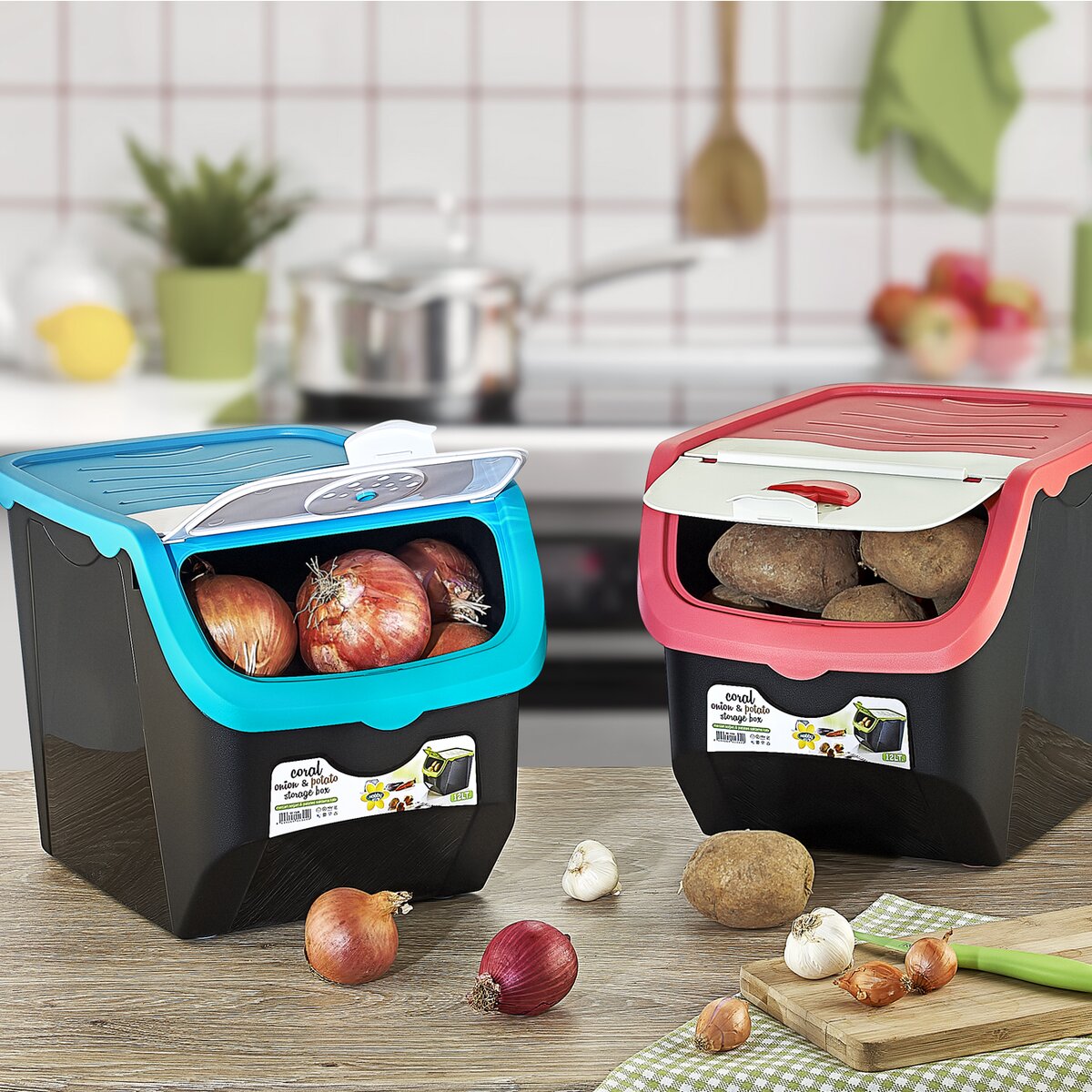 Skladovací box je výbornou odpoveďou na otázku, kam uložiť cibuľu, cesnak alebo zemiaky. Je vyrobený z odolného plastu a má objem 12 l.