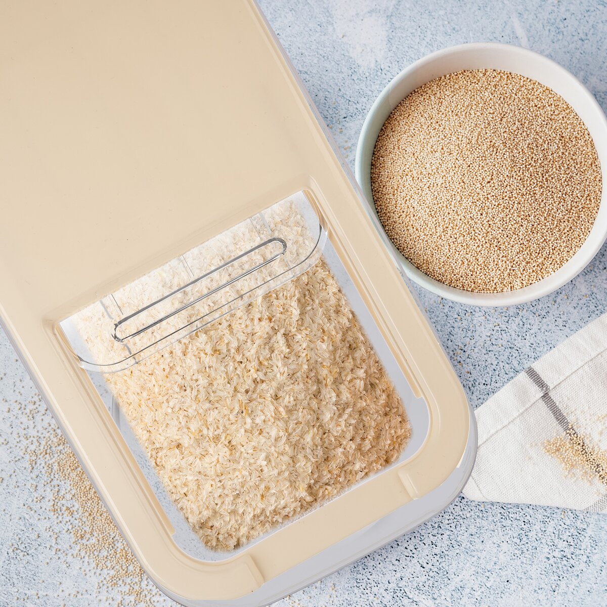 Viac informáciíŠikovný priehľadný box s nakloneným dnom má všestranné použitie. Je ideálny na uloženie väčšieho množstva sypkých surovín, ktoré je možné nabrať cez zasúvaciu časť v béžovom veku. Sypké hmoty alebo rôzne drobnosti sa tak zosypávajú do prednej časti, takže naberanie lopatkou bude pohodlnejšie.