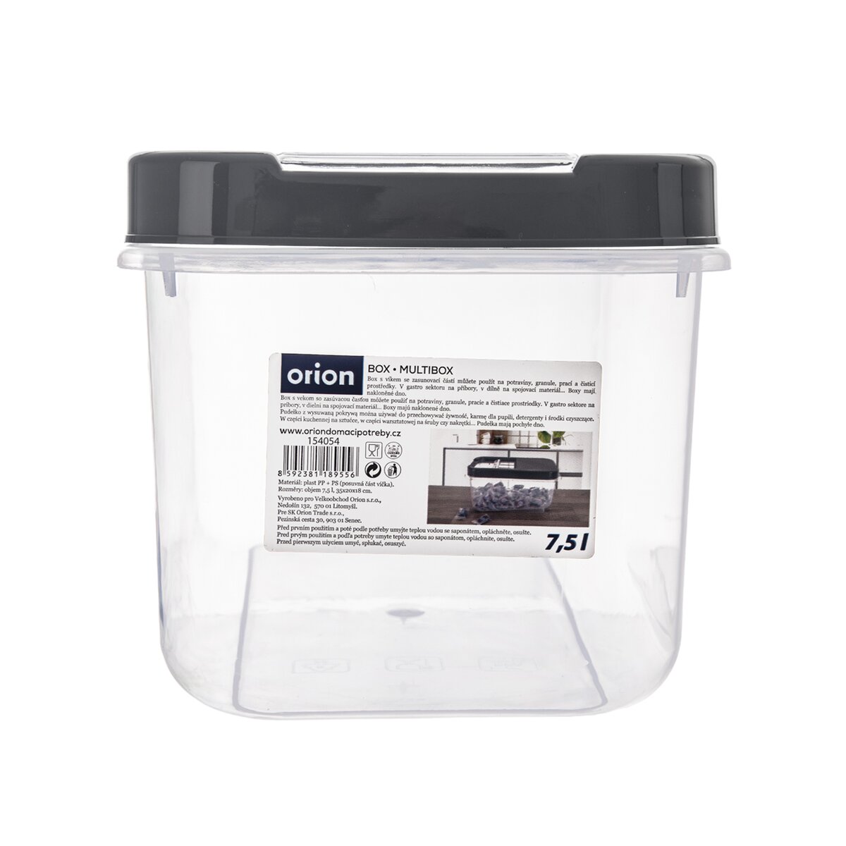 Kód produktu 154054Transparentný box SLOP s objemom 7,5 l je uzavretý šedým vekom so zasúvacou časťou. Cez ňu je možné naberať uskladnené sypké suroviny v domácnosti a gastro prevádzkach, tablety do umývačky, rôzne drobnosti pre domácich majstrov, náradie, krmivá atď.