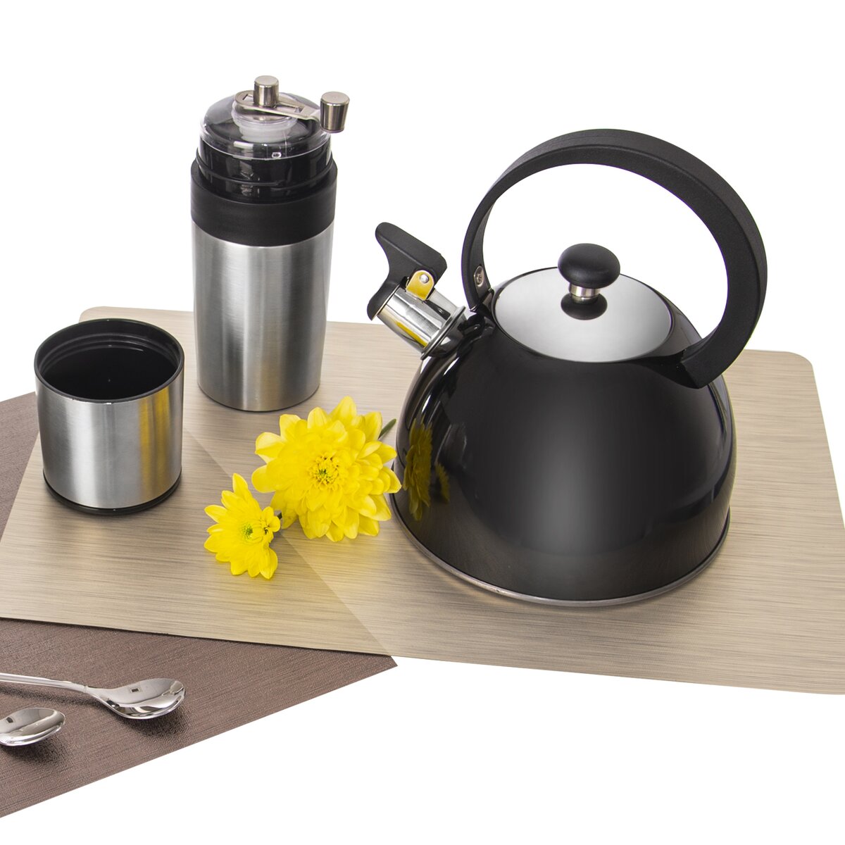 Viac informáciíLuxusný, minimalistický čajník čiernej farby je opatrený odklápacou píšťalkou, ktorá ohlási variacu sa vodu. Rovné dno zaistí rýchly rozvod tepla a ohrev vody nielen na kávu, čaj na všetkých typoch spotrebičov, vrátane indukcie.