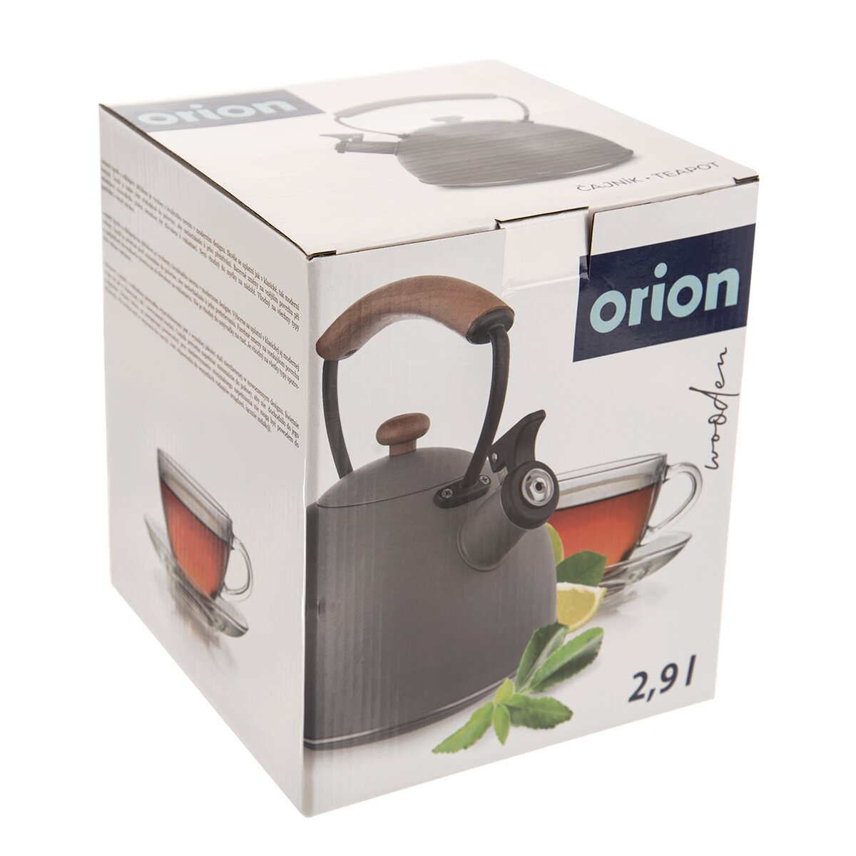 Kód produktu 113517Moderný šedý nerezový čajník v objeme 2,9 l s odklápacou píšťalkou, rukoväťou a držadlom viečka z gumovníkového dreva. Je vhodný k ohrevu vody na všetkých typoch sporákov, vrátane indukcie.