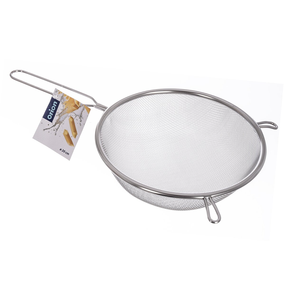 Kód produktu 124436Nerezové cedidlo s priemerom 20 cm s jemnou sieťkou, dlhšou rukoväťou a dvoma zarážkami.