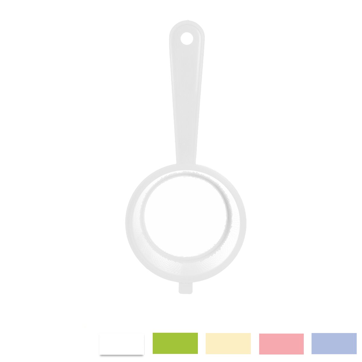 Kód produktu 120692Farebné plastové cedidlo s priemerom 7,5 cm s jemným sitkom a očkom na zavesenie.