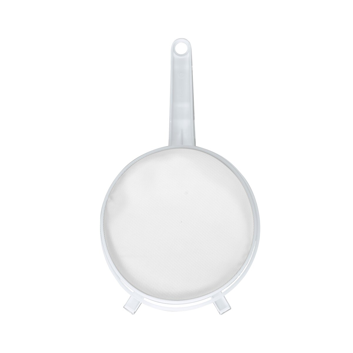 Kód produktu 124400Biele plastové cedidlo WHITE s priemerom 12 cm s jemným sitkom a očkom na zavesenie.