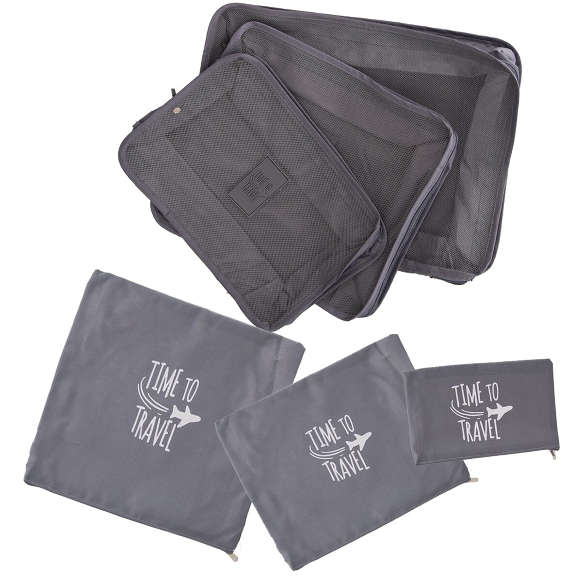 Či už ste aktívny cestovatelia, alebo len máte radi vo svojich veciach poriadok, tieto cestovný organizéry si obľúbite. Vďaka širokej škále rozmerov sa do nich zmestí veľa vecí od malých drobností až po oblečenie alebo kozmetiku. Šesť rôznych veľkostí organizérov, ktoré sú uzatvárateľné na zips. Tri sú opatrené sieťkou na prehľad o obsahu s uchom. Vďaka organizérom si kufor usporiadate a budete ho mať prehľadne zrovnaný. Materiál: polyester, plast, kov, koženka. Rozmery: 40x30x13 cm, 30x28x13 cm, 30x21x12 cm, 35x28 cm, 27x26 cm, 26x17 cm.