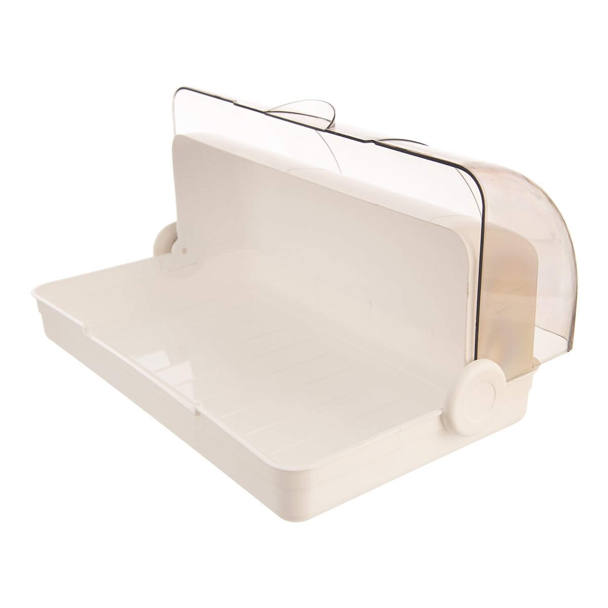 Kód produktu 152461Chlebník s rozmermi 42x26x17,5 cm, vyrobený z plastu a doplnená transparentným posuvným vekom, je určený na uloženie pečiva.