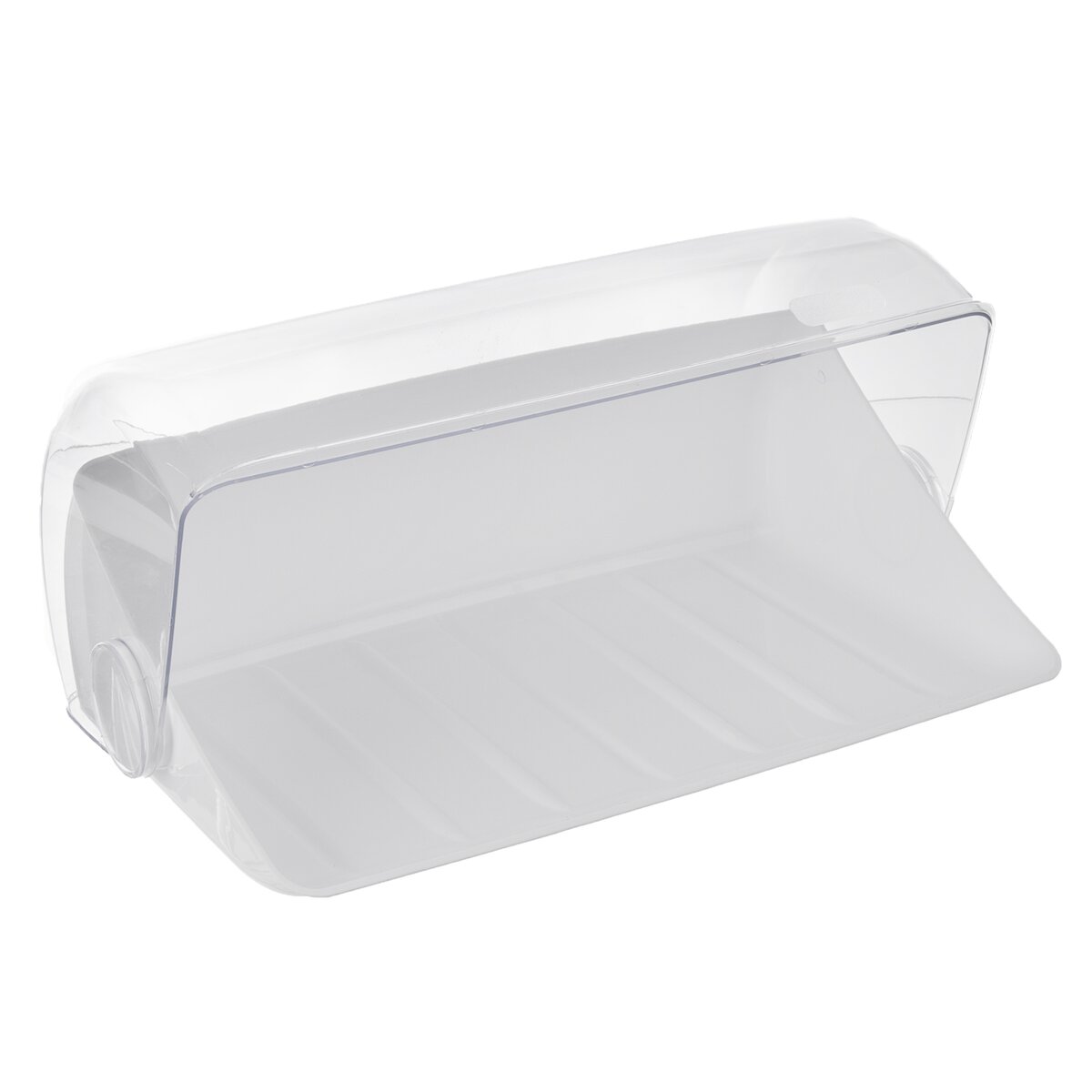 Kód produktu 152454Biely plastový chlebník GRAHAM s rozmermi 39,5×26,5×18 cm s vyklápacím transparentným vekom, slúžiaci na uloženie pečiva.