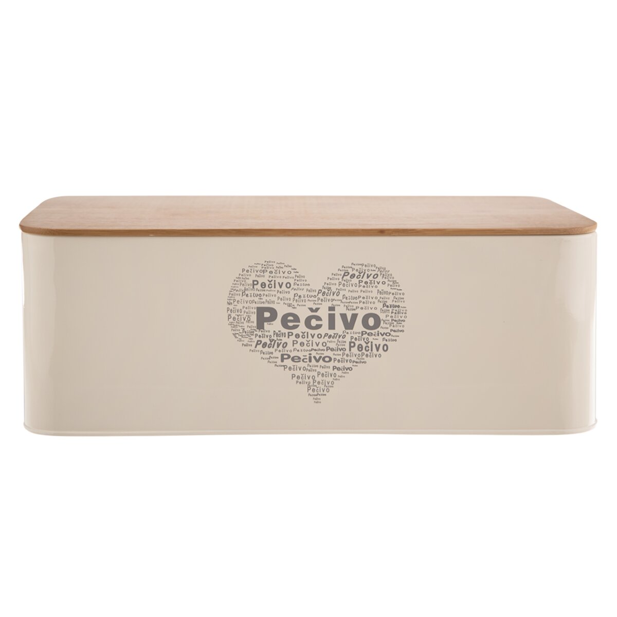 V prípade tohto plechového chlebníka, ktorý slúži na uskladnenie chleba, rožkov alebo žemlí, je hlavným nápisom slovo PEČIVO. Súčasťou je aj drevené viečko, ktoré môžete využiť zároveň ako kuchynskú doštičku na krájanie alebo ako podložku pod horúci hrniec.