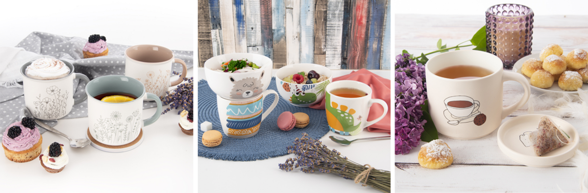 Tieto kombinácie hrnčekov s miskou s nadväzujúcim dekorom prinášajú pocit hravosti do každodenného pitia čaju. Ocenia ich hlavne deti, ktoré si môžu vybrať z piatich dekorov. Tak šup, hore chrumky, ovsenú kašu alebo šalát a do hrnčeka obľúbený čajíček. Taká roztomilá sada môže byť aj pekným darčekom.