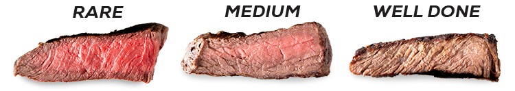 Pritlačte bruško malíčka k palcu a časť pod palcom Vám napovie tuhosť, tvárnosť steaku, ktorý je úplne prepečený. Tzv. medium, kedy je mäso hnedé, ale stred zostáva šťavnatý a ružový, je možné odvodiť, keď spojíte prostredník s palcom. Ukazovák s palcom, kedy je plocha pod palcom mäkká, napovie, že mäso v tejto konzistencii je rare, teda veľmi jemne prepečené, vo vnútri ešte surové.