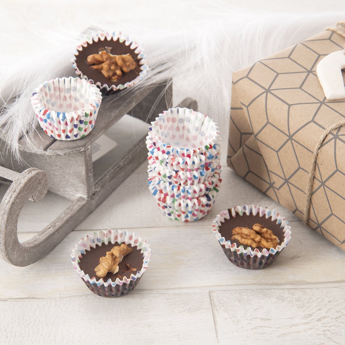 Viac informáciíVeselé cukrárske košíčky z papiera na pečenie, ktoré znesú teplotu až 220 °C, pre všetkých domácich cukrárov a pekárov. Sú dobrým spôsobom, ako bez prácneho umývania foriem alebo plechov upiecť menšie muffiny a cupcakes. Alebo do nich môžete vložiť nepečené sladké guličky aj naliať čokoládu s orechmi, ovocím či božským slaným karamelom.
