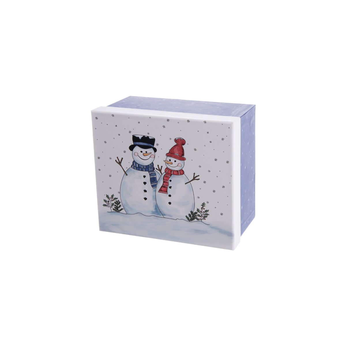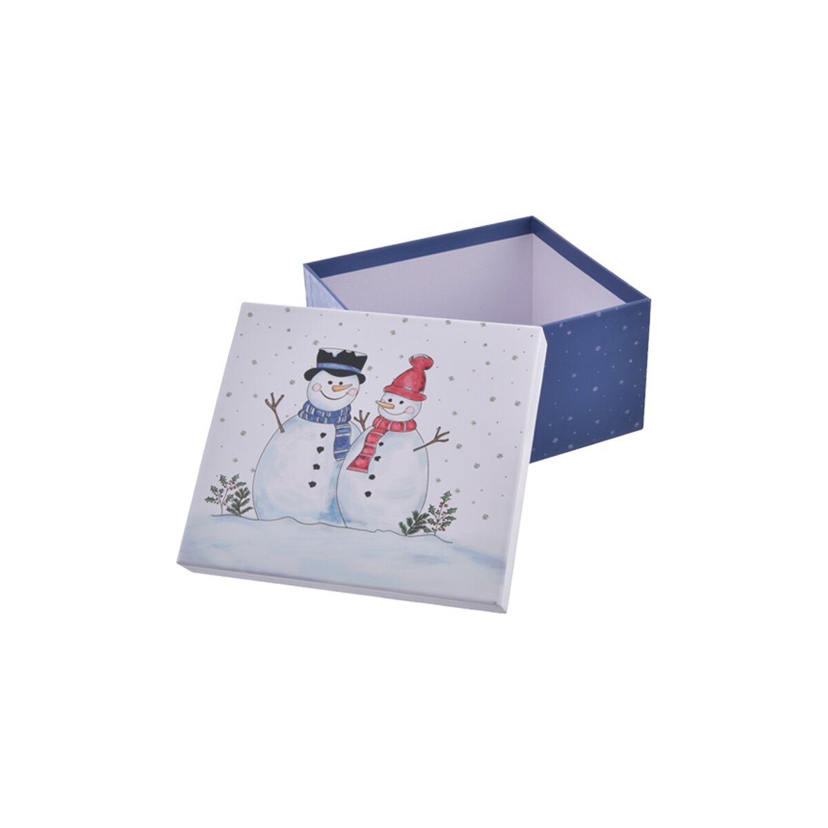 Kód produktu 823104Originálna modrá papierová krabica SNEHULIAK má biele veko s milým motívom dvoch snehuliakov. Je určená na pohodlné balenie darčekov.