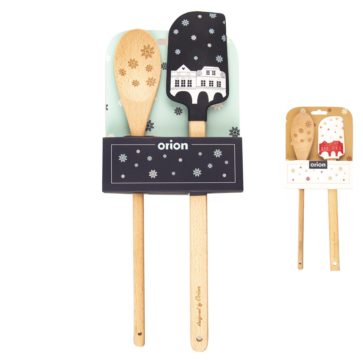 Sada kuchynskej stierky a varešky s vianočným motívom môže byť skvelým darčekom alebo pozornosťou v čase Vianoc. Mäkké hrany stierky dokonale priľnú k nádobe. Dve farebné varianty. Darčekové balenie. Materiál: silikón – možno bez problémov použiť do teploty -40°C do 120°C, je vhodná prakticky pre všetky druhy potravín - ako vodné, napríklad aj kyslé, ale tiež aj s obsahom tuku či oleja vrátane alkoholických, drevo. Rozmery: stierka š. 5 cm, d. 29 cm, vareška š. 4,5 cm, d. 29 cm.