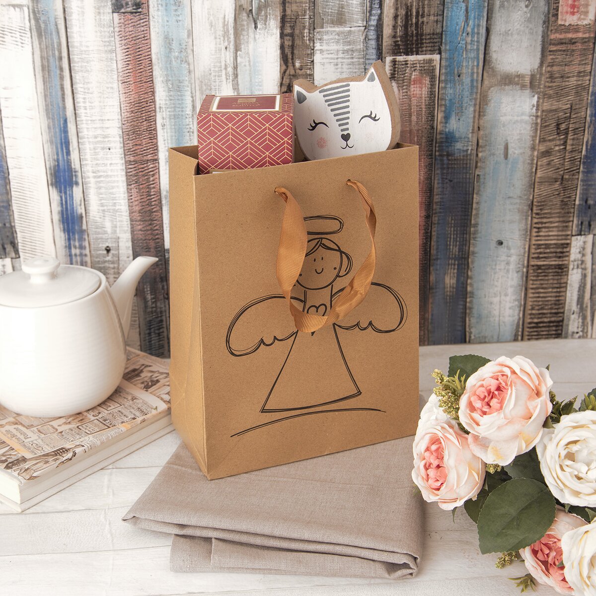 Darček pre milovanú osobu, rodičov, kamarátku alebo kolegu v práci ľahko uložíte bez zložitého balenia do papierovej tašky s motívom anjela.