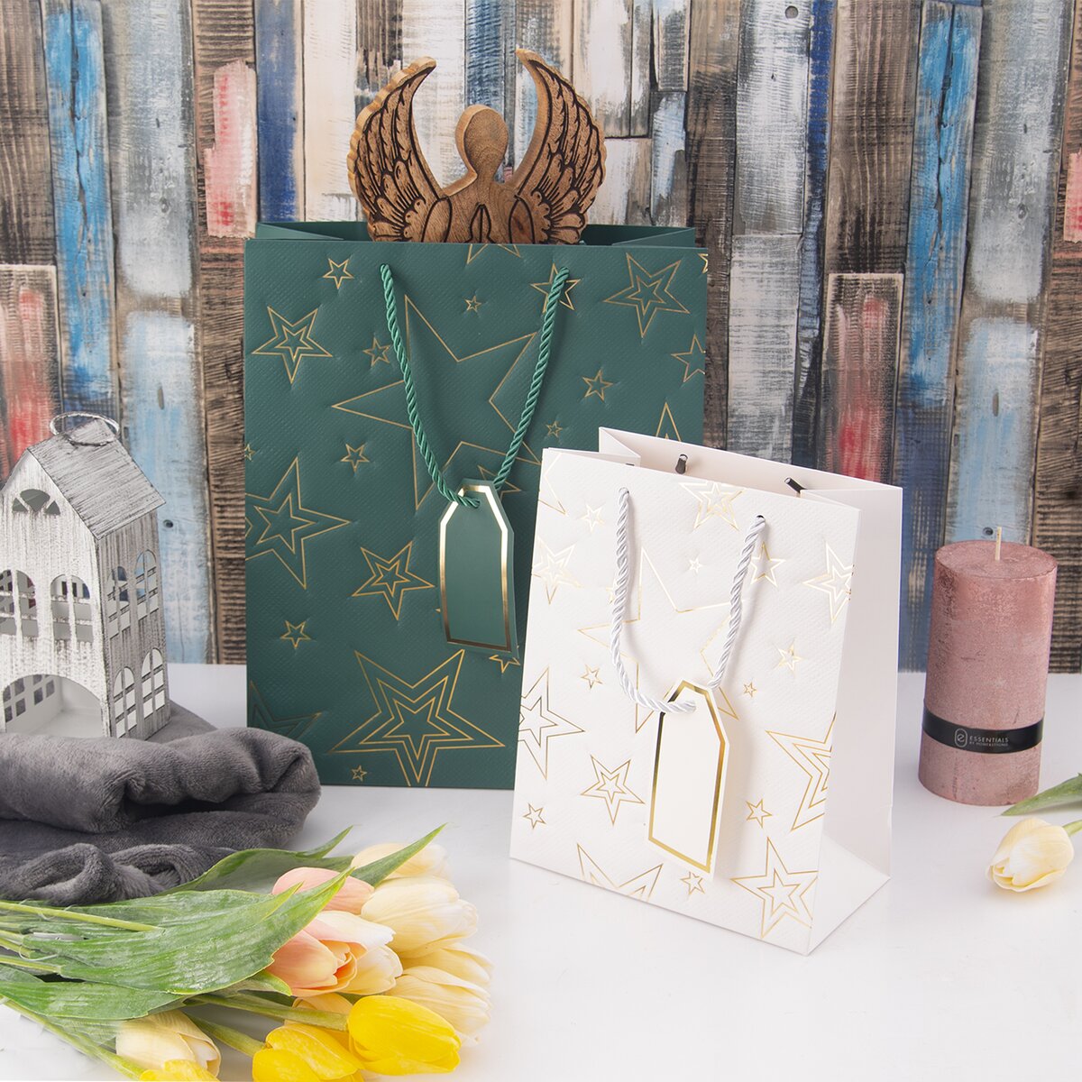 Je doplnená menovkou, kam je možné napísať venovanie alebo meno obdarovaného. S jej prenášaním pomôžu držadlá z krúteného polyesterového špagátu.
