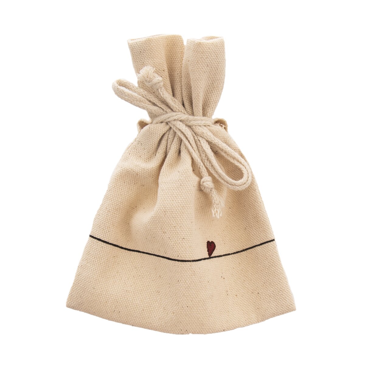 Je zdobený dekórom jemných liniek a srdiečok, vo vnútri je vložené bavlnené vrecko stiahnuté šnúrkou, vhodné na sypaný čaj alebo sušené bylinky, takže sa môže stať krásnym darčekom pre kamarátku, mamičku alebo dobrého známeho.