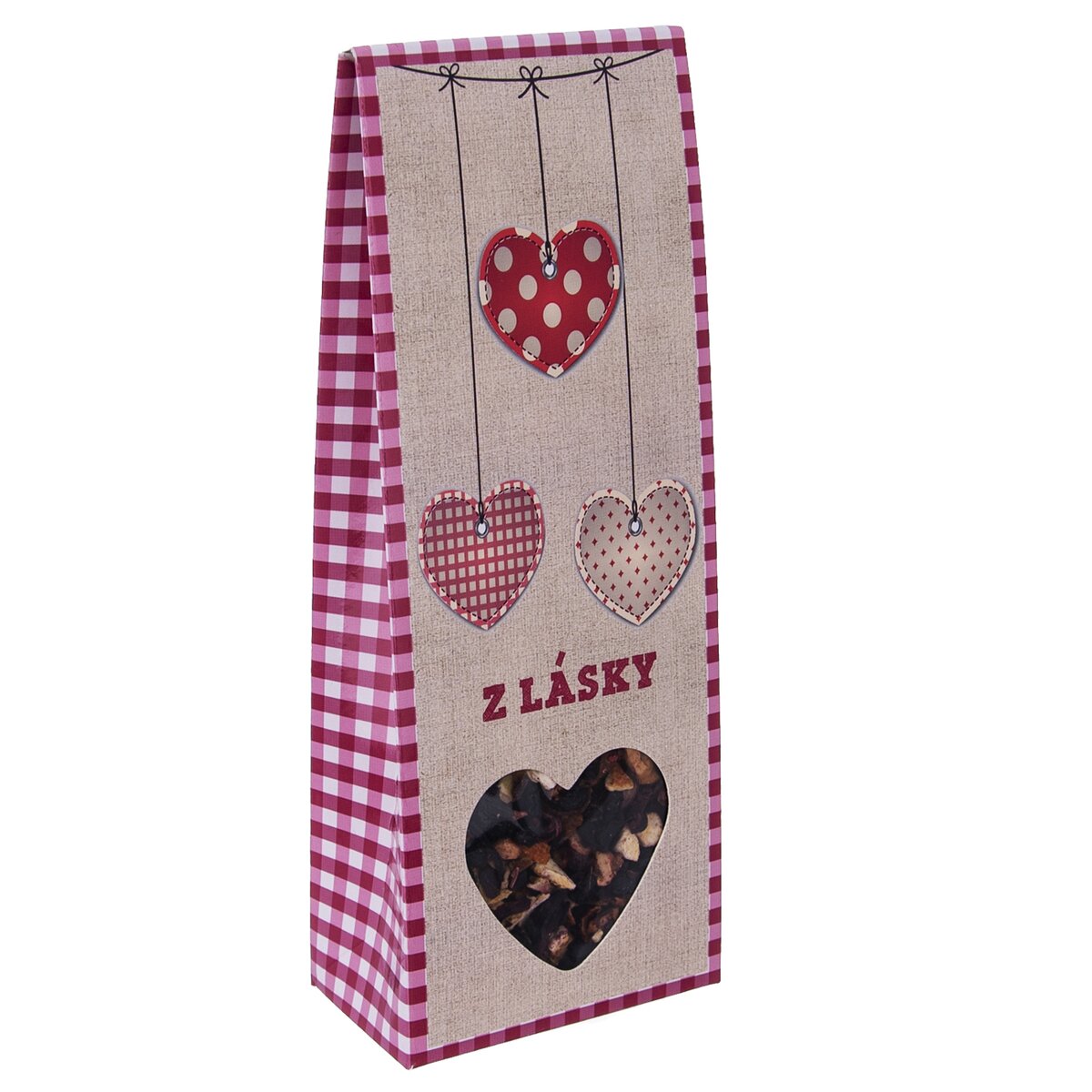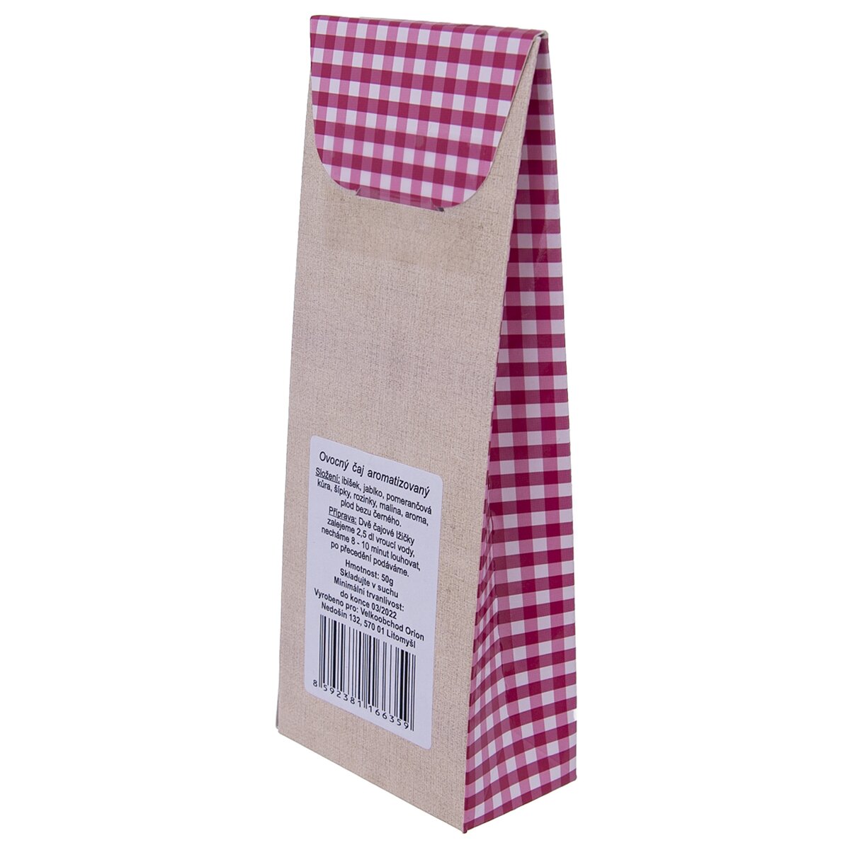 Ovocný aromatizovaný čaj vo farebnej krabičke s textom ako poďakovanie a potešenie obdarovanej osobe. 50 g. Rozmery obalu: 7x4x18,5 cm.
