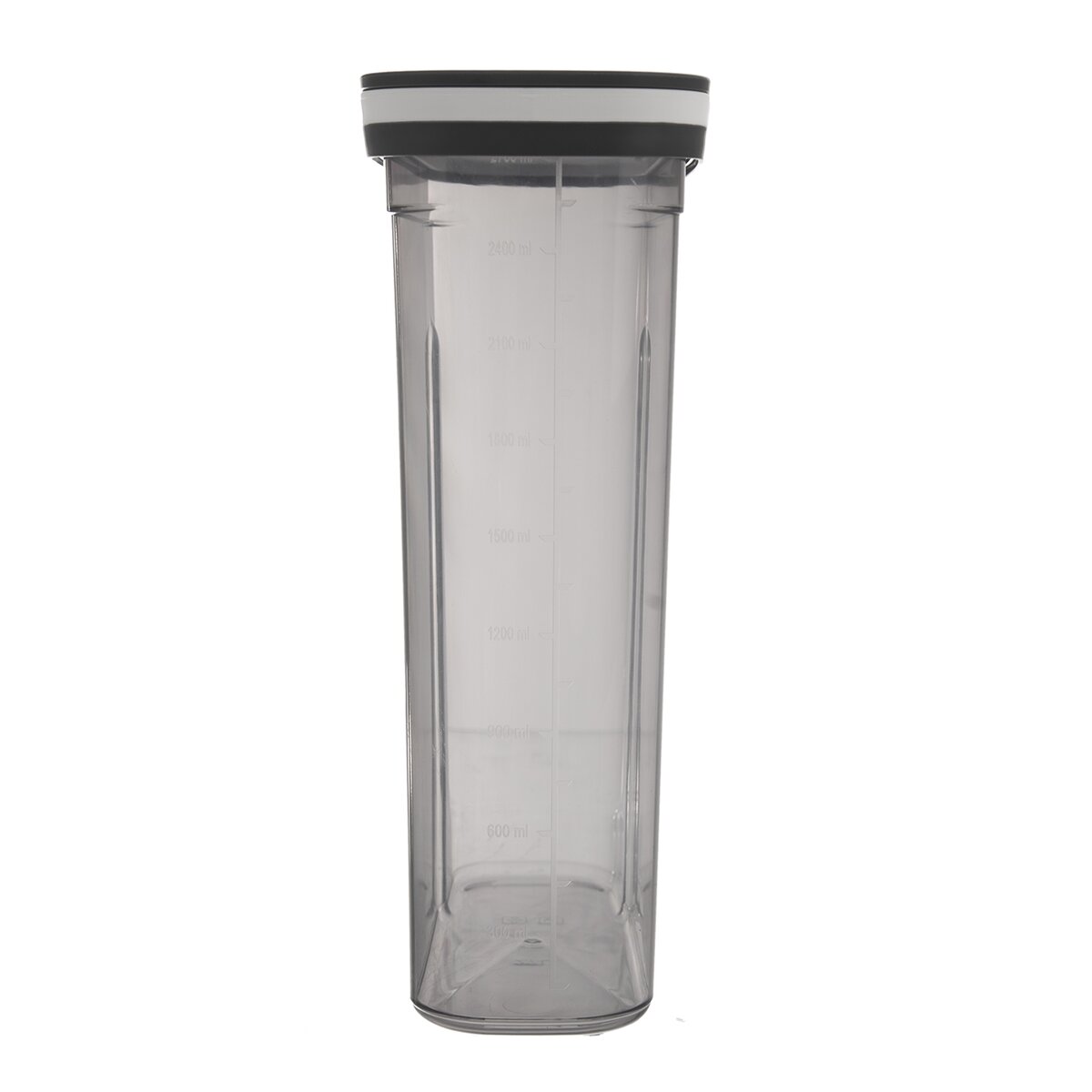 Kód produktu 127171Plastová šedá dóza GREY s objemom 2,7 l, s dávkovacím posuvným uzáverom, je vhodná na uloženie špagiet, múky, strukovín aj cereálií. Vyznačená odmerka na strane po 300 ml.