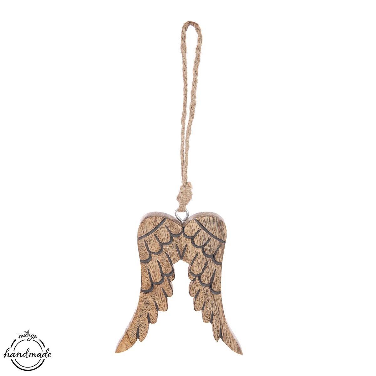 Kód produktu 351874Dekorácia ANJELSKÉ KRÍDLA na zavesenie ozdobí vašu domácnosť nielen v období Vianoc, využiť ju môžete po celý rok. Vhodná tiež ako darček. Materiál: mangové drevo, kov, juta. Rozmery: š. 11,8 cm, v. 13,8 cm, v. s povrazom 29,5 cm.