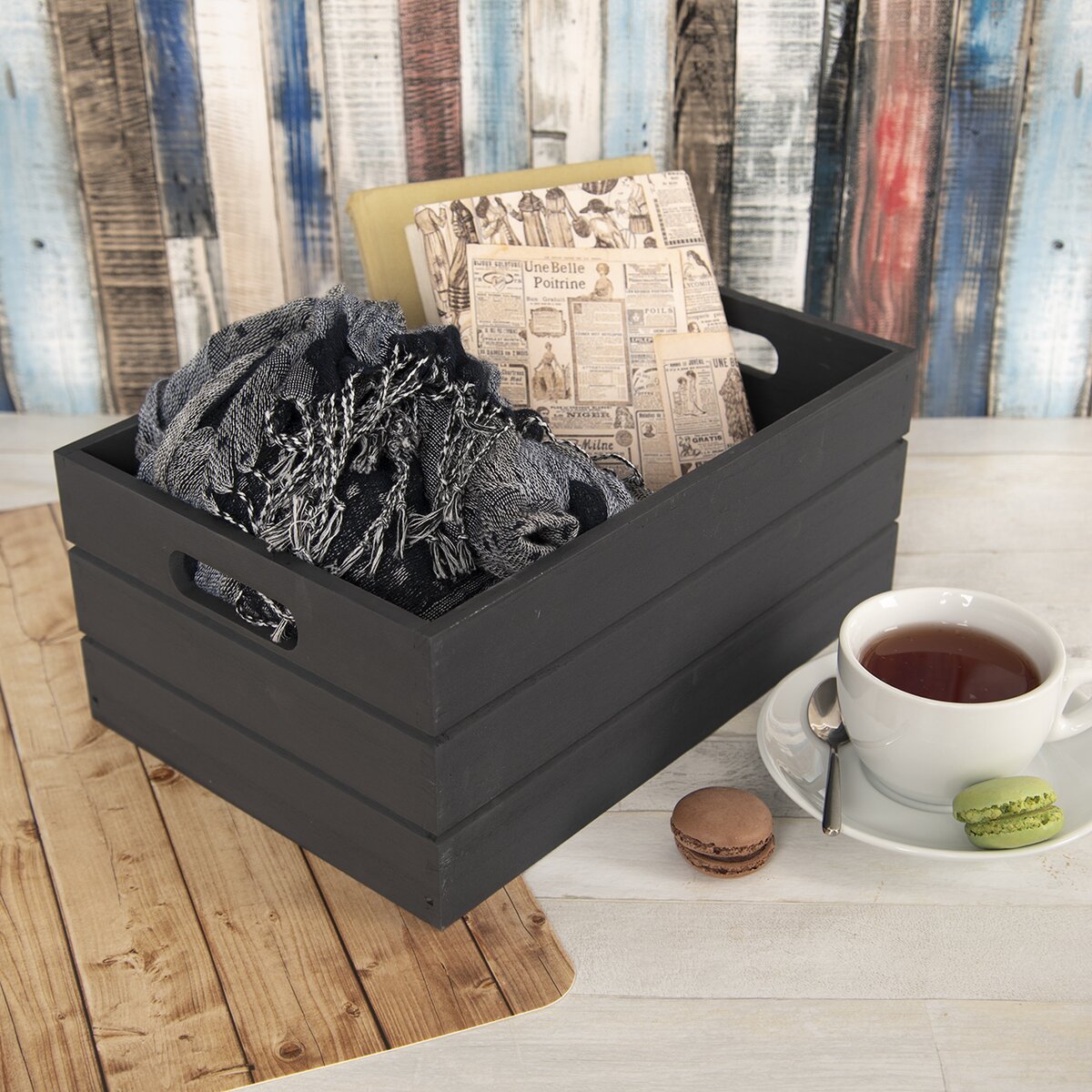 Kód produktu 731060Drevená debnička v antracitovej farbe, vo veľkosti 31x21x13 cm, pomôže usporiadať veci dennej potreby, poslúži aj ako zaujímavá dekorácia v interiéri.