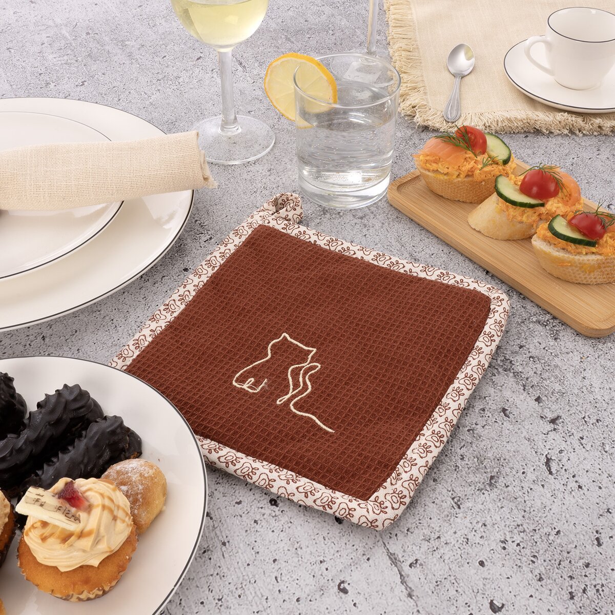 Kód produktu 710850Dekoratívna podložka z kolekcie MICKA, ktorá sa hodí do každej domácnosti, je ideálnym doplnkom ako do moderného, tak aj do klasického interiéru. Esteticky oživí váš priestor. Praktické pútko umožňuje ľahké zavesenie, keď podložku práve nepoužívate. Možno ju prať pri teplote do 40 °C, žehliť maximálne do 150 °C, nesmie sa bieliť ani chemicky čistiť. Materiál: 100% bavlna. Rozmery: 20x20 cm. Designed by Orion.