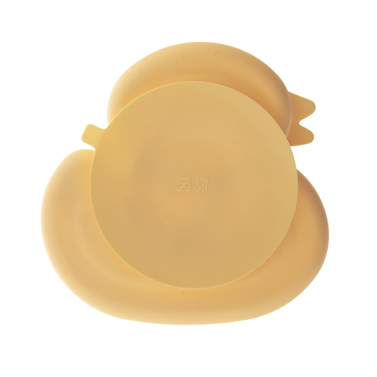 Kód produktu 129570Silikónový žltý tanier je určený na podávanie jedál malým deťom. Tvar kačičky je členený na 3 sekcie, veľká prísavka navyše udrží tanier na mieste.