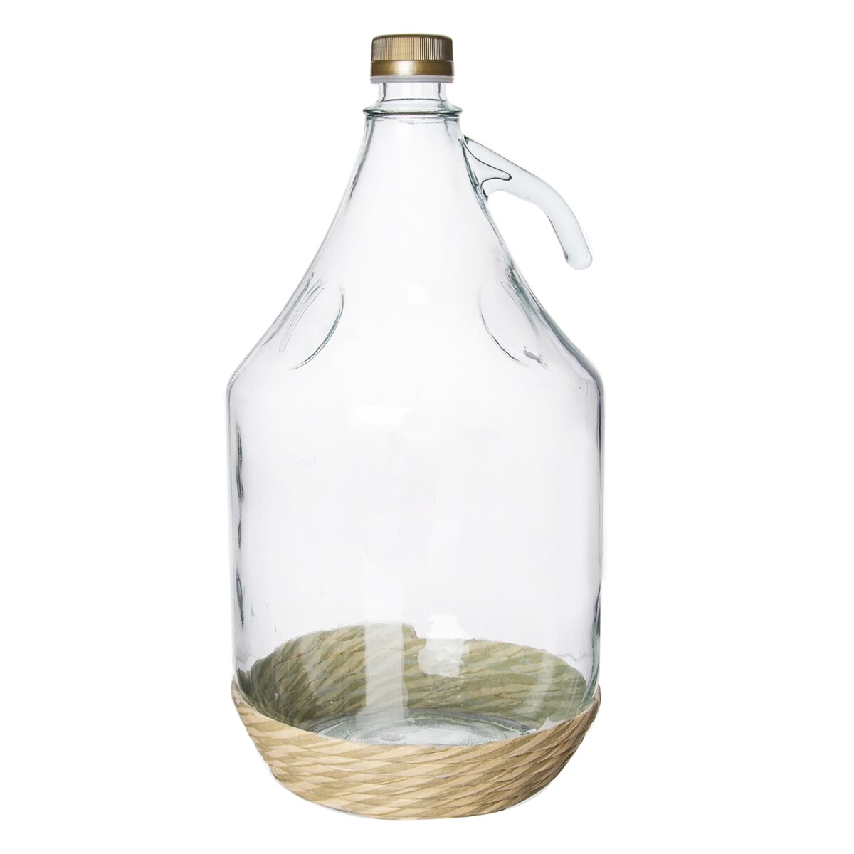 Kód produktu 127602Sklenený demižón s objemom 5 l s plastovým viečkom na závit a opleteným dnom z morskej trávy.