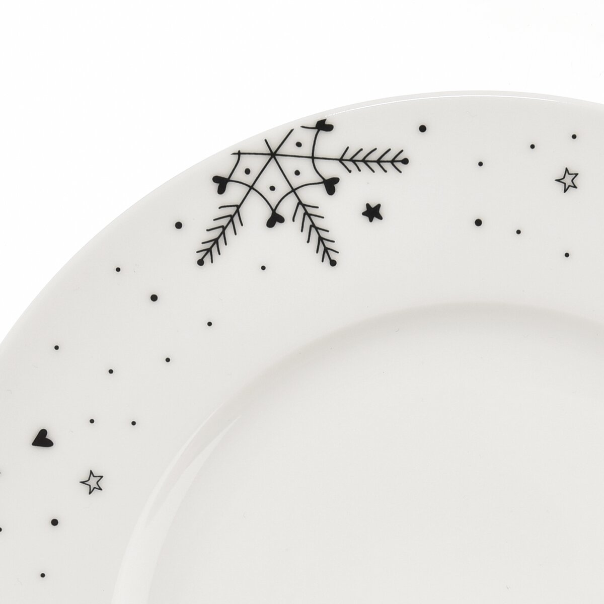 Kód produktu 129545Porcelánový dezertný tanier VLOČKA s priemerom 20 cm je zdobený jemným dekórom snehových vločiek a nápisom NIEKTO TO ZJEDOL.
