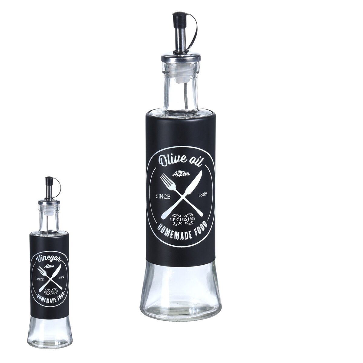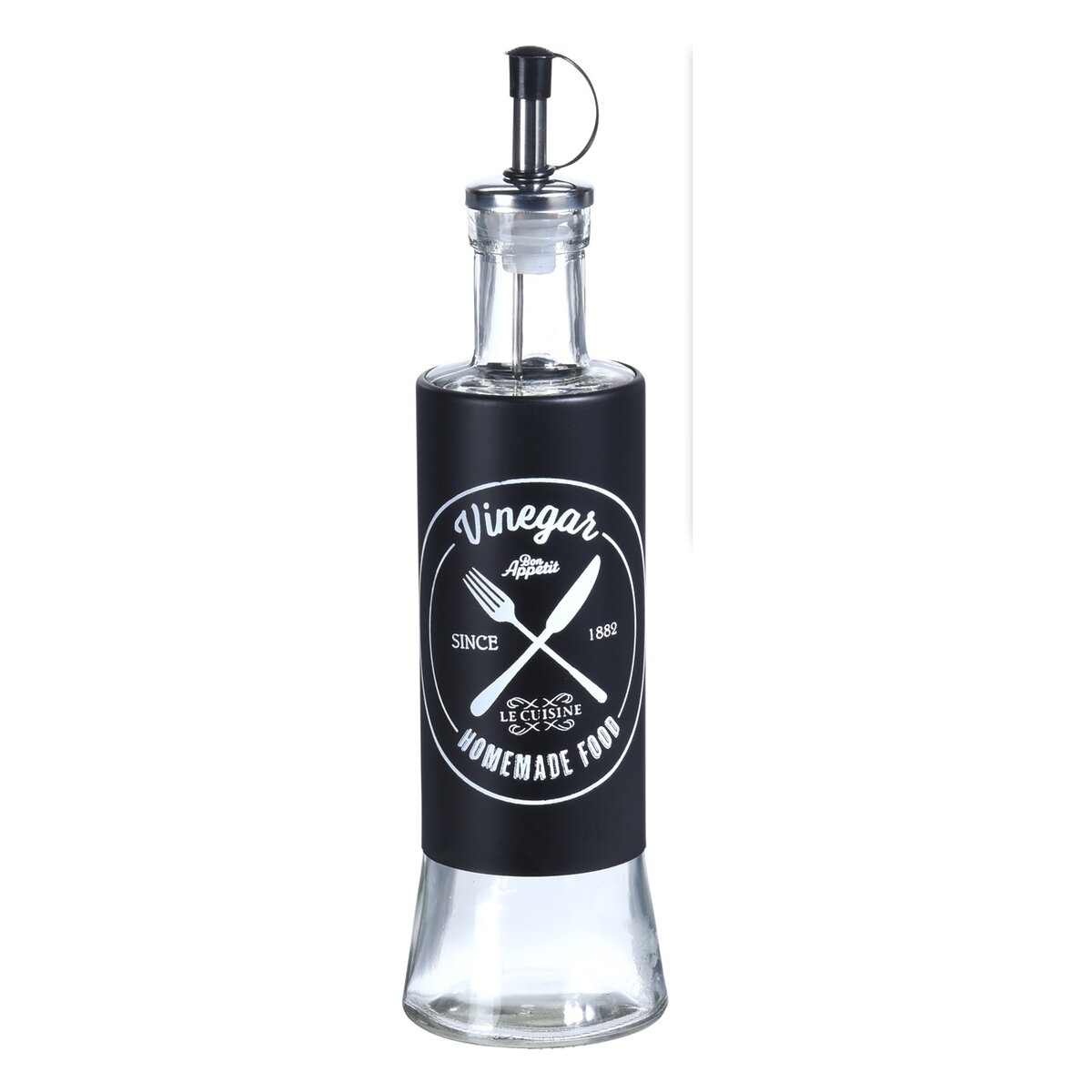Jej objem je 320 ml a pozornosť upúta predovšetkým jej výrazný, čierno-biely dekor, ktorý vás upozorní na obsah nádoby. Má praktický nerezový dávkovač uľahčujúci nalievanie tekutiny.