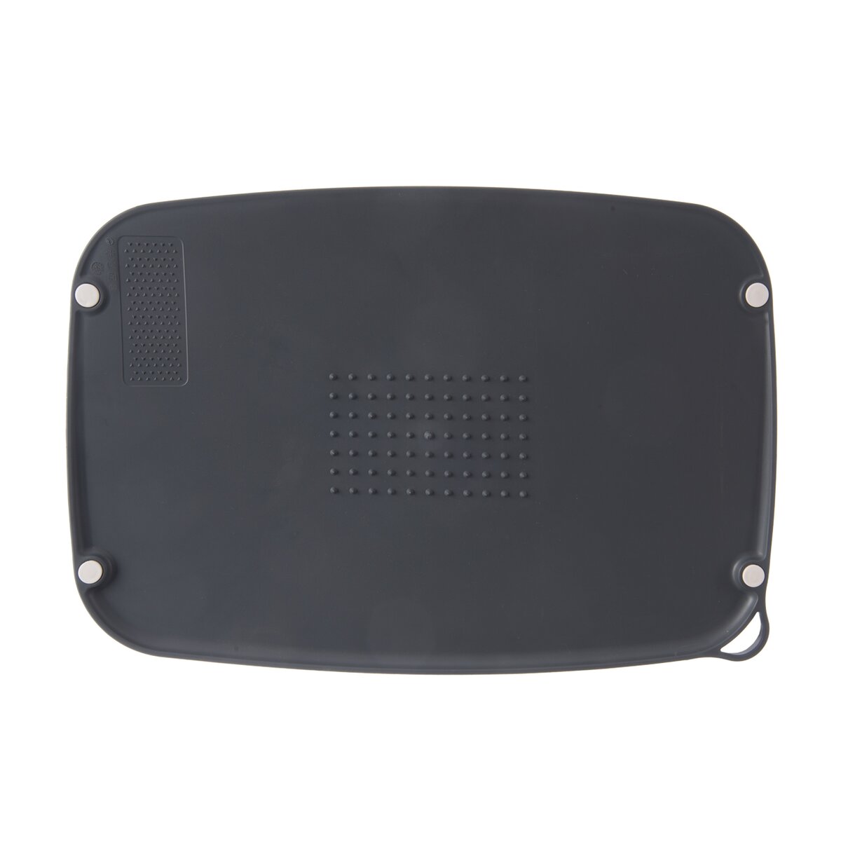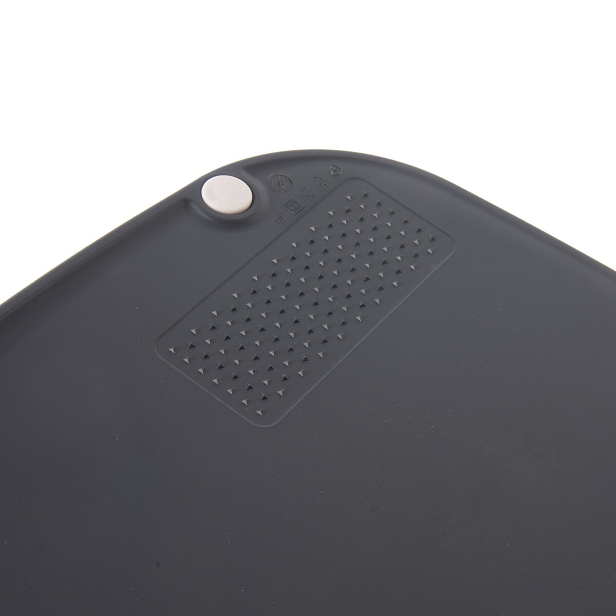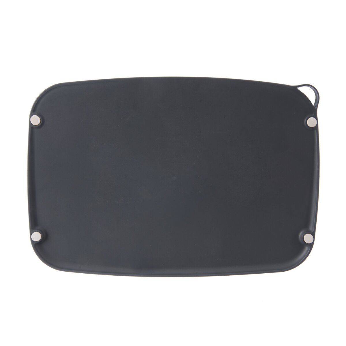 Kód produktu 121426Sivá plastová doska s miernym sklonom na krájanie najrôznejších potravín. Je obojstranná, z jednej strane univerzálna hladká plocha, z druhej má uprostred výstupky, ktoré udržia potraviny na jednom mieste, drobné hroty zase pomôžu s trením cesnaku. Má protišmykové podložky.